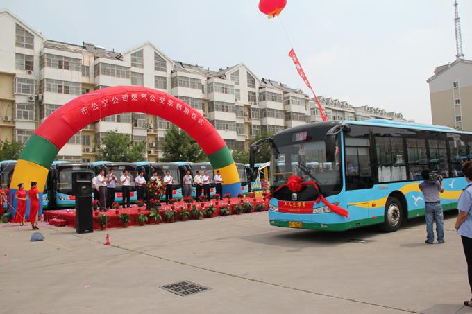 6月25日上午10:30分,我市70臺燃氣空調(diào)公交車啟用儀式在市公交公司院內(nèi)舉行,市委常委、副市長田青云、市交通運輸局局長燕乃敏以及市財政局、市交警支隊、市經(jīng)信委、市環(huán)保局、市城市管理局的相關領導參加了啟用儀式。啟用儀式由市政府副秘書長張寶華同志主持,田青云副市長作了重要講話。