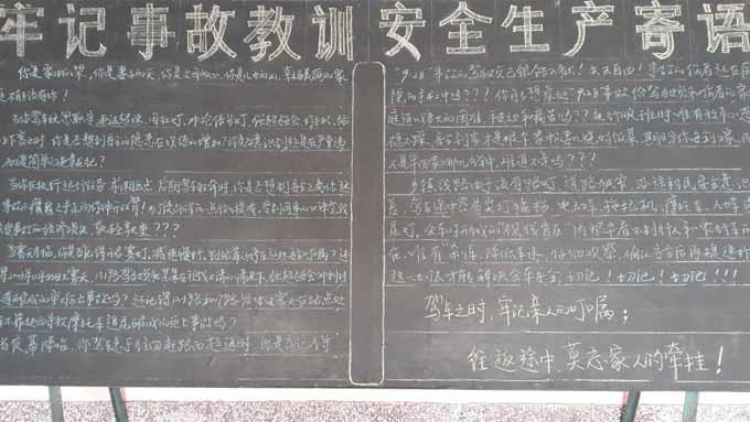 近日,市公交公司汽車(chē)三隊(duì)為貫徹落實(shí)好公司第四季度安委會(huì)的會(huì)議精神,做好駕駛員工安全教育,進(jìn)一步抓好車(chē)隊(duì)安全生產(chǎn)工作,一是針對(duì)鄉(xiāng)鎮(zhèn)線路的營(yíng)運(yùn)特點(diǎn),專(zhuān)門(mén)出了一期“安全生產(chǎn)黑板報(bào)”,二是專(zhuān)門(mén)制作了一幅以“注重安全,關(guān)愛(ài)生命”為主題的展板,擺放到大廳里,以此警醒和告誡廣大一線駕駛員,行車(chē)中要把安全放在首位,牢記遵紀(jì)守法,按章行車(chē)、謹(jǐn)慎駕駛、確保安全。