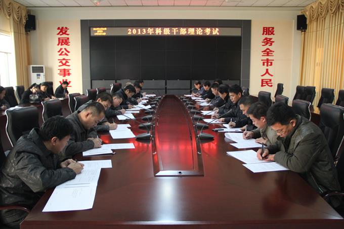 12月20日,按照市直機(jī)關(guān)工委、市學(xué)委辦公室的要求,市公交公司以開卷考試的形式,組織66名副科級以上干部進(jìn)行了干部理論考試??荚囉墒兄睓C(jī)關(guān)工委統(tǒng)一命題,重點檢查了對黨的十八屆三中全會精神、習(xí)總書記“中國夢”的構(gòu)建、全市工作布局及對當(dāng)前理論熱點問題的看法等。市公交公司66名副科級以上干部認(rèn)真答卷,順利完成考試。