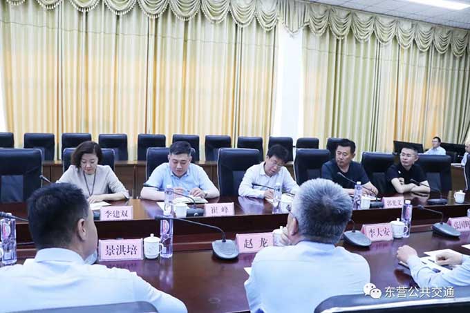 在座談交流會上,雙方互相介紹了基本情況,現(xiàn)場觀摩了東營智慧公交平臺,詳細(xì)了解了智慧公交平臺系統(tǒng)建設(shè)運營情況,圍繞公交信息化建設(shè)、運營服務(wù)、安全管理等方面工作進(jìn)行了深入交流。座談交流結(jié)束后,利津縣交通運輸局一行赴汽車一隊進(jìn)行了實地參觀,現(xiàn)場了解了車隊日常管理等情況。
