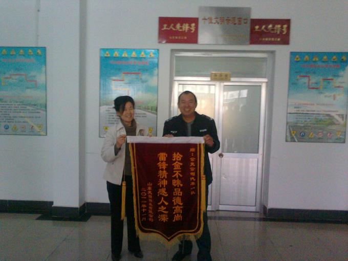11月12日早上,山東天園銅業(yè)有限公司的耿愛華女士拿著一面寫有“拾金不昧品德高尚、雷鋒精神感人之深”的錦旗來到市公交公司汽車一隊(duì),感謝車隊(duì)駕駛員王波師傅拾金不昧的高尚品德。據(jù)車隊(duì)了解得知,11月8日,耿愛華女士乘坐王波師傅駕駛的值班車上班。上班后發(fā)現(xiàn)裝有3000多元現(xiàn)金和手機(jī)的錢包不見了,她心急如焚,當(dāng)時(shí)就癱坐在地上。正在這時(shí),耿愛華女士的一位同事前來告訴她丟失的錢包找到了,公交公司汽車一隊(duì)駕駛員王波師傅剛打來電話,錢包內(nèi)的3000多元現(xiàn)金和手機(jī)都在,讓她放心。原來,王波師傅執(zhí)行完任務(wù)回公司打掃車內(nèi)衛(wèi)生時(shí),發(fā)現(xiàn)座位夾縫中有一個(gè)錢包,打開一看里面那么多現(xiàn)金,心想失主一定很著急,便通過錢包內(nèi)手機(jī)記錄的電話聯(lián)系到耿愛華女士的一位同事,讓她通知耿愛華女士及時(shí)到市公交公司汽車一隊(duì)領(lǐng)取。