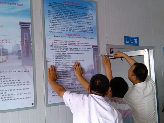 為了進一步落實“交通四化管理”工作要求,推進“五城聯(lián)動”工作開展,完善安全生產(chǎn)管理制度,健全安全生產(chǎn)管理體系,提升安全生產(chǎn)管理水平,近日,市公交公司根據(jù)工作實際將車隊隊長、安全副隊長、安全員的崗位職責和駕駛員安全操作規(guī)范、駕駛員管理規(guī)定、車隊安全生產(chǎn)管理體系以及道路旅客運輸企業(yè)安全管理規(guī)范等規(guī)章制度進行了重新梳理和完善,并制作成展板安裝在各車隊醒目位置供車隊全體干部職工進行學(xué)習和交流。這些規(guī)章制度的進一步完善,不僅使公司駕駛員進一步樹立了安全行車意識,規(guī)范了安全操作規(guī)程,還使公司安全生產(chǎn)管理人員進一步明確了自己的工作職責,規(guī)范了安全管理流程,為公司安全生產(chǎn)管理工作的穩(wěn)步前進奠定了基礎(chǔ)。