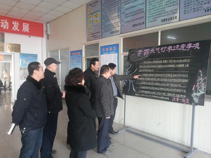 本次教育,圍繞霧霾天氣誘發(fā)交通事故的因素、預(yù)防和減少交通事故的應(yīng)對(duì)措施、行車中應(yīng)該注意的事項(xiàng)以及車輛維護(hù)保養(yǎng)常識(shí)等有關(guān)內(nèi)容展開。安全教育在市公交公司汽車一隊(duì)調(diào)度室分批進(jìn)行,并制作了防霧霾宣傳板報(bào)。