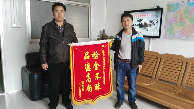 4月13日,張先生不慎將錢包遺漏在執(zhí)行東營至北京長途包車任務的魯E88305車輛上,急忙從濱州來到車隊尋找,經過劉風澤耐心細致地尋找,最終將裝有1000元現金、身份證、駕駛證和銀行卡的錢包物歸原主,張先生非常感動,送來錦旗表示感謝。