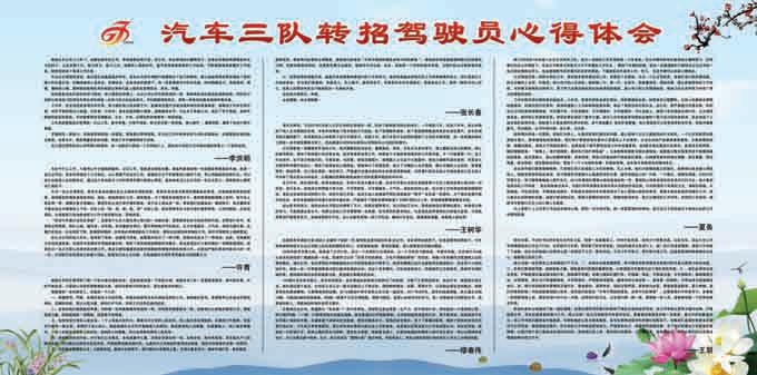 近日,市公交公司為鍛造基層車隊(duì)學(xué)比趕超的濃厚工作氛圍,促進(jìn)廣大職工進(jìn)一步轉(zhuǎn)變工作作風(fēng),做到學(xué)有榜樣,趕有目標(biāo)。汽車三隊(duì)組織2014年度公司轉(zhuǎn)招的駕駛員書寫了“轉(zhuǎn)招駕駛員工作經(jīng)驗(yàn)及心得體會(huì)”,并制作成展板放在辦公樓大廳,供全體職工瀏覽觀看,激發(fā)大家從中學(xué)習(xí)轉(zhuǎn)招人員工作中那種安全駕駛、優(yōu)質(zhì)服務(wù)、樂于助人、團(tuán)結(jié)同事的良好工作態(tài)度,以及低調(diào)務(wù)實(shí)、任勞任怨、埋頭苦干、持之以恒、頑強(qiáng)拼搏的進(jìn)取精神,以此推動(dòng)車隊(duì)整體工作再上新臺階。