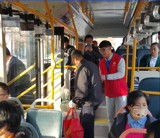 為進(jìn)一步營造文明城市復(fù)核迎測的濃厚氛圍,弘揚“奉獻(xiàn)、友愛、互助、進(jìn)步”的志愿服務(wù)精神,踐行常態(tài)化志愿服務(wù)機制,市公交公司于10月31日上午聯(lián)合職業(yè)學(xué)院開展了志愿服務(wù)活動。志愿服務(wù)活動主要是引導(dǎo)乘客有序乘車,幫助老弱病殘孕等特殊乘客優(yōu)先乘車及主動為老弱病殘孕讓座或倡導(dǎo)乘客保持車廂衛(wèi)生以及引導(dǎo)公交車輛規(guī)范??康鹊?。