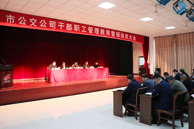 2021年11月5日上午9時,市公交公司干部職工管理教育整頓動員大會在南會議室召開,市交通運(yùn)輸局黨組成員、市交通運(yùn)輸事業(yè)服務(wù)中心主任王杰出席會議,公司黨委書記趙龍同志主持動員會。