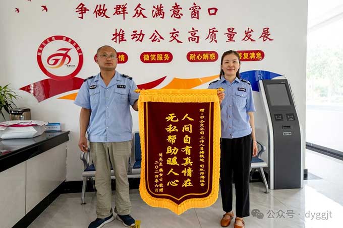 6月27日,市民劉先生和魏女士將一面印有“人間自有真情在 無私幫助暖人心”的錦旗,送到市公交集團(tuán)客服中心,以感謝市公交集團(tuán)客服中心與汽車一隊(duì)接力幫助尋找孩子的暖心事跡。