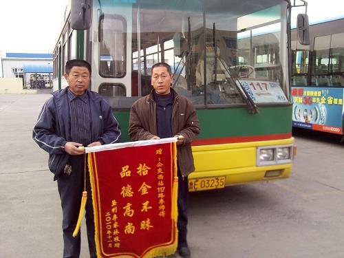 11月17日,家住墾利縣城的李家林先生拿著寫有“拾金不昧、品德高尚”的錦旗來到了市公交公司汽車三隊(duì)對李業(yè)縣師傅表示感謝。經(jīng)車隊(duì)了解得知,11月10日汽車三隊(duì)駕駛員李業(yè)縣在運(yùn)行完117路班次后正常清理車廂衛(wèi)生時發(fā)現(xiàn)了一個黑色皮包并立即將皮包上交車隊(duì)。車隊(duì)負(fù)責(zé)人通過現(xiàn)場清點(diǎn),發(fā)現(xiàn)皮包內(nèi)共有現(xiàn)金2600余元,賬單一宗,根據(jù)包里面的信息及時聯(lián)系到失主李家林。當(dāng)李家林先生看到了失而復(fù)得的錢包時,當(dāng)即拿出200元塞給李業(yè)縣以表示謝意,被李業(yè)縣婉意謝絕。回去后,李家林先生心情久久不能平靜,特意制做了錦旗送到車隊(duì),以表達(dá)感激之情,并要求車隊(duì)對李業(yè)縣師傅這種拾金不昧的優(yōu)良品質(zhì)進(jìn)行表揚(yáng)。李業(yè)縣同志作為剛到公交公司參加工作的新員工,在面對失主巨額財物的“誘惑”下,不為利益所動,秉承和發(fā)揚(yáng)了公交人一貫的高尚品質(zhì),他的所作所為充分展現(xiàn)了一名公交駕駛員應(yīng)有的職業(yè)道德素質(zhì)。
