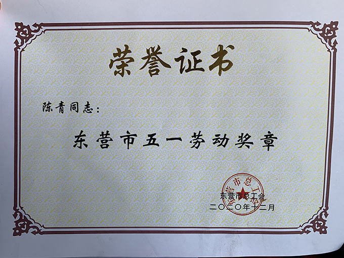 陳青同志榮獲“東營市五一勞動獎章”